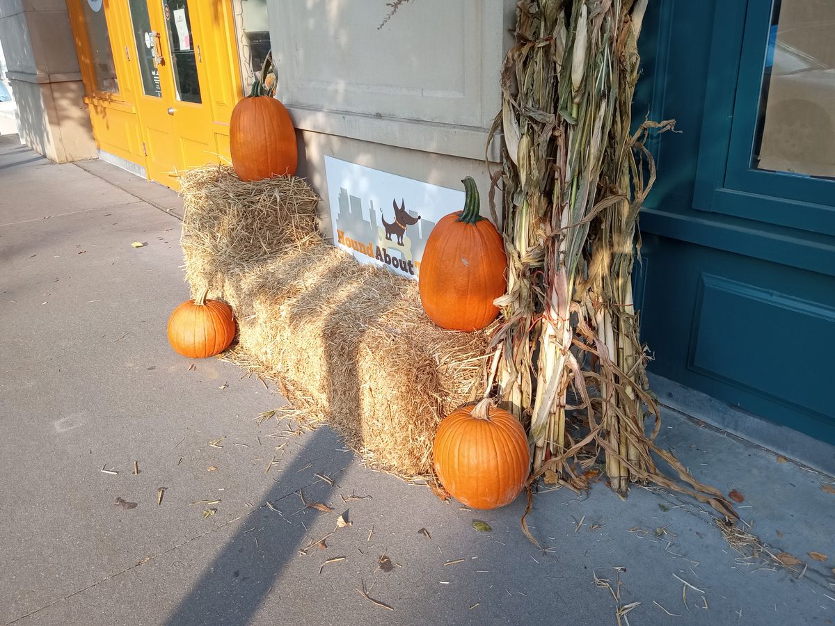 Like other smartphone cameras in this class, color accuracy seems to be an issue with the G Pure. Most photos look fine, but there are a few issues, like the pumpkins that look too red with stems that look too blue to be realistic. Likewise, the yellow door should look more orange, and the blue door should look more teal (with more green) than blue.